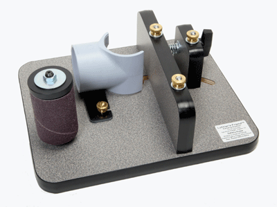 The Luthier's Friend is a one stop sanding station and thickness sander designed to meet the demands of anyone requiring precision. Luthiers, woodworkers, model makers, instrument makers , knife makers,bow makers,boat builders , home shop owners ,and architectural modelers will all find it useful. You can thickness wood to precisely down to 0.010"(0.25mm) , make duplicate parts using templates, and shape complex parts freehand. It sets up easily on the drill press and hangs on a nail when you are not using it.Dust collection is nearly perfect. |