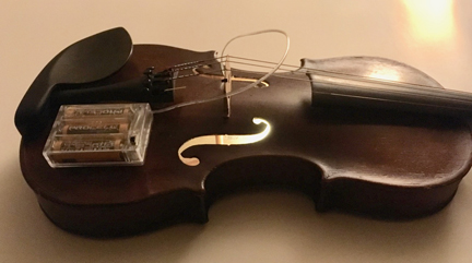 Violin Model features a small smooth flexible strip with 10 LEDs. Lights are on one side of the strip which easily slips through the f-hole and can be oriented to suit the viewer then locked in position using the f-hole.